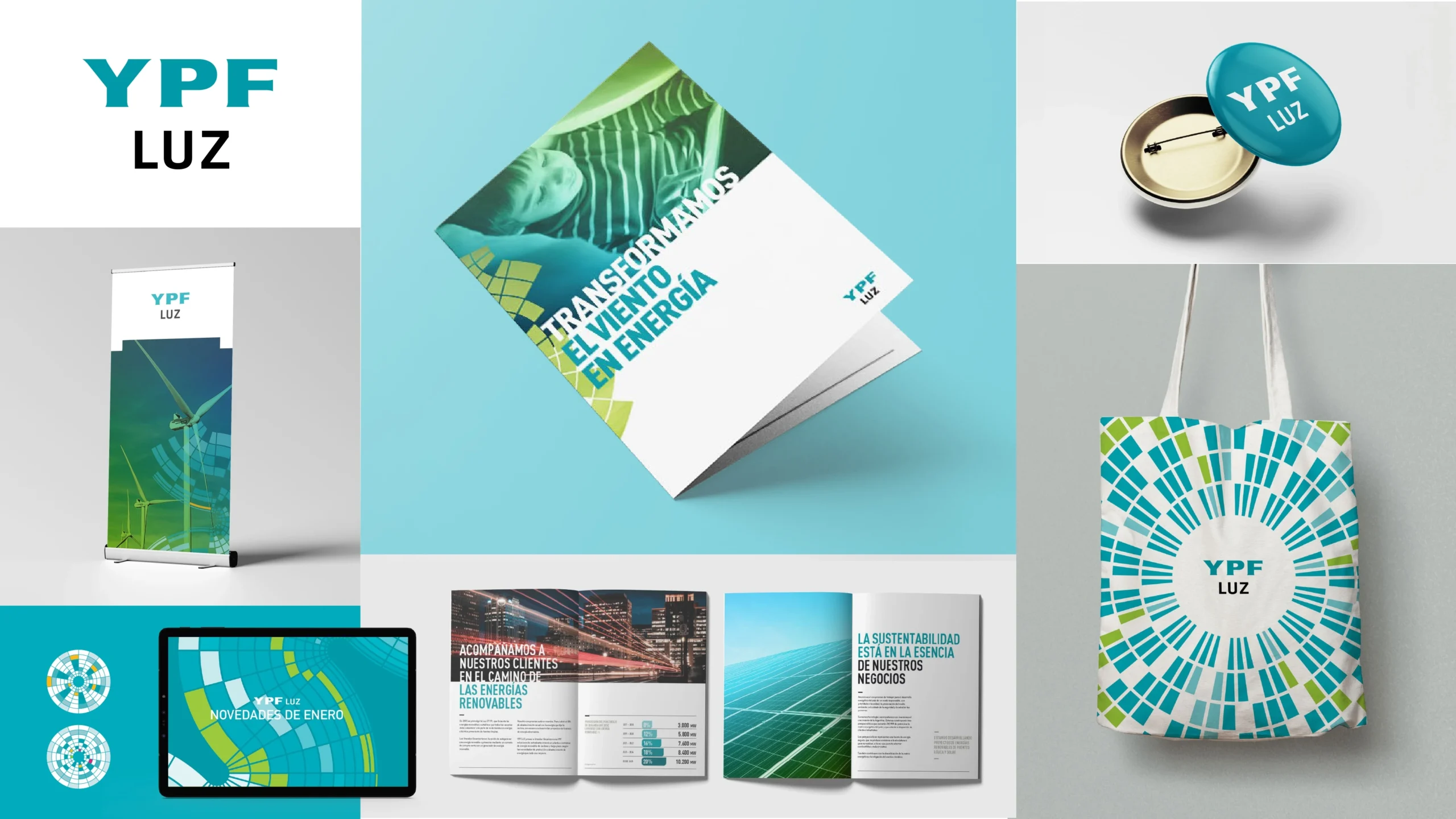 Desde Membranding, trabajamos en la expansión del Sistema de Identidad Visual de YPF Luz, una de sus unidades de negocios. Además de ampliar su identidad gráfica, los acompañamos en la realización y producción de diversas piezas internas y externas donde se implementó el nuevo sistema. También elaboramos una serie de videos animados donde se presentan las normas de seguridad para instruir a quienes visitan los parques eólicos de la compañía.